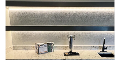 Under-cabinet LED lighting, under shelf lights, over-cabinet lighting, and all other types of indirect LED lighting can by installed by Matthews Electric Services in Rockwall, Dallas, Collin & Kaufman County TX.